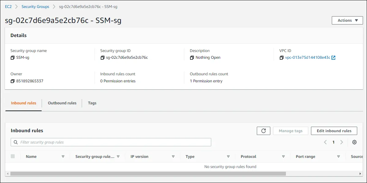 보안그룹 Inbound가 모두 막혀있어도, Session Manager를 통해 EC2에 접근할 수 있었습니다