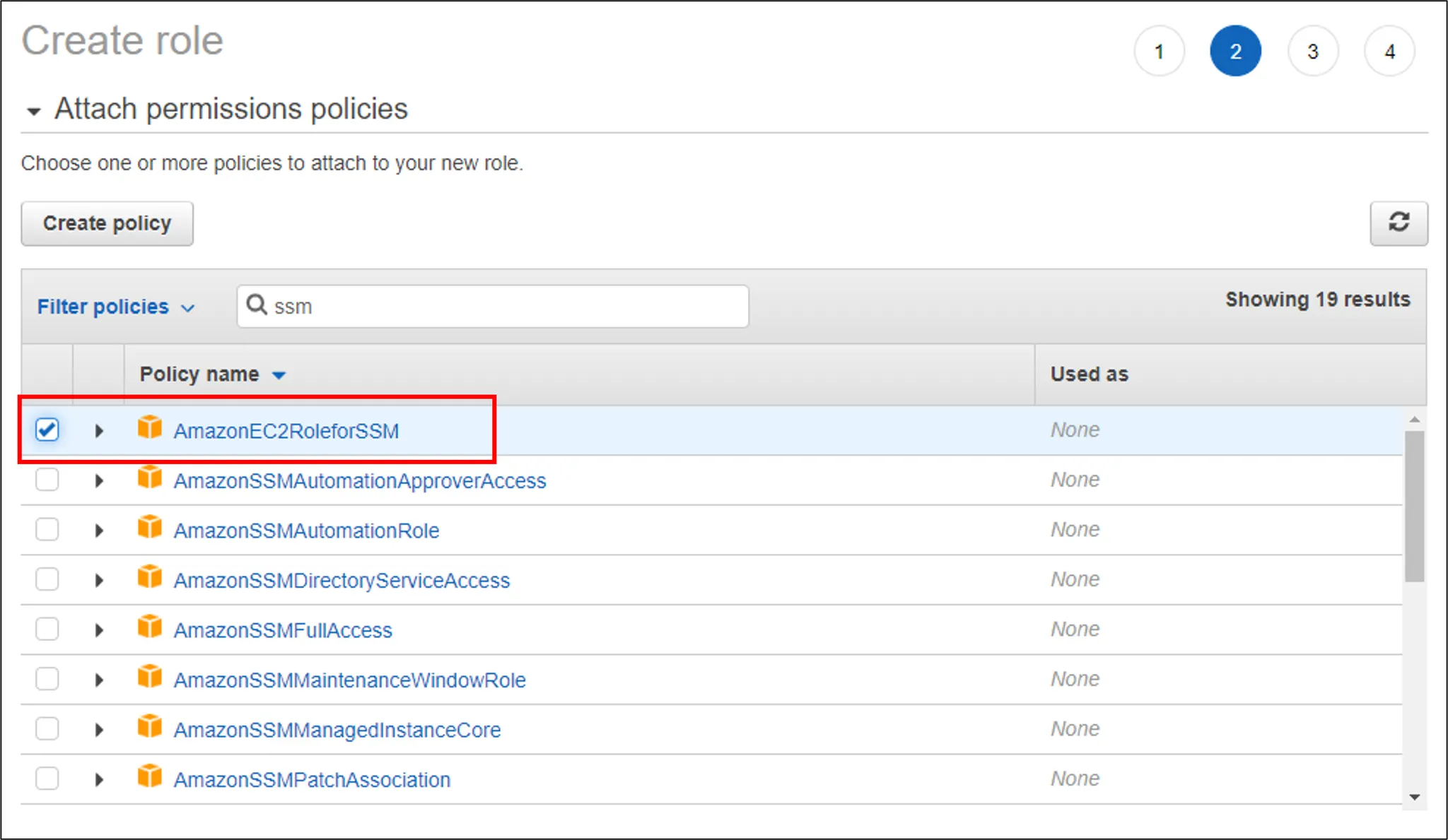 AmazonEC2RoleforSSM Policy를 찾아 체크해준 후, Next: Tags를 누릅니다