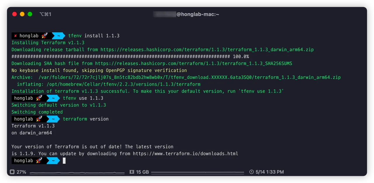 $ tfenv install 1.1.3
