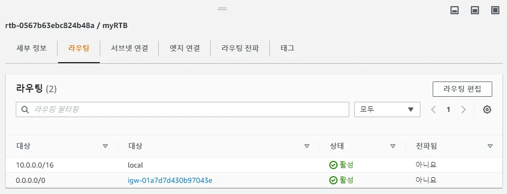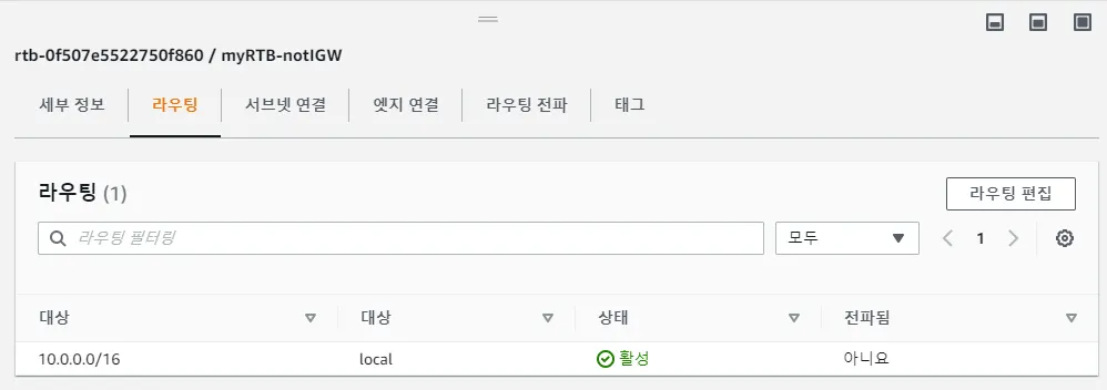AWS 콘솔 상에서 라우팅 테이블을 제대로 살펴보도록 하죠