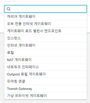 참조할 수 있는 라우팅 테이블의 대상은 좌측과 같습니다